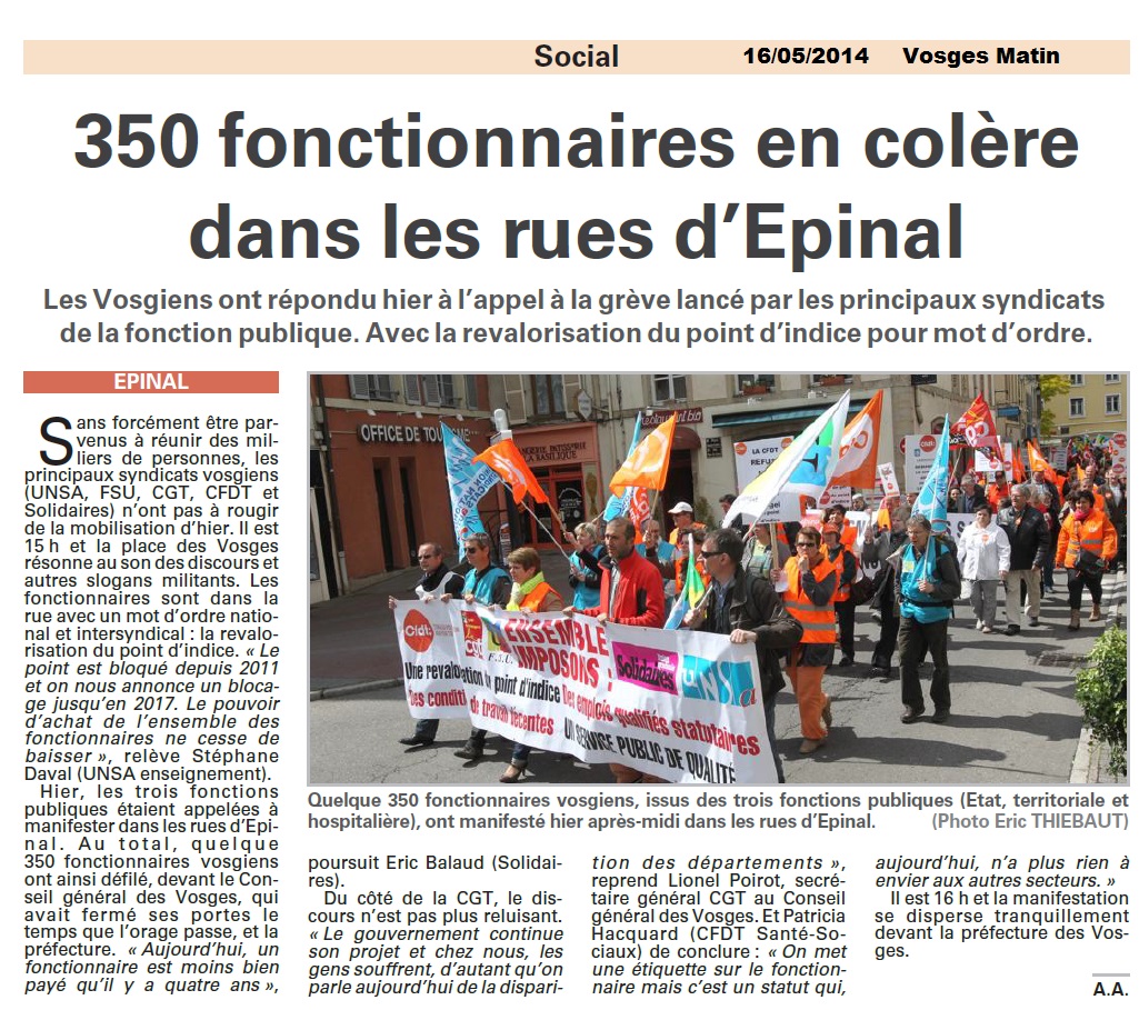 Les Vosgiens ont répondu le 15 mai à l’appel à la grève lancé par les principaux syndicats de la fonction publique. Avec la revalorisation du point d’indice pour mot d’ordre.