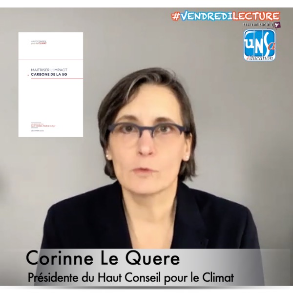 Regarder la vidéo du Vendredi Lecture UNSA Éducation sur le rapport « Maîtriser l’impact carbone de la 5G » avec Corinne Le Quere, présidente du Haut Conseil pour le Climat.