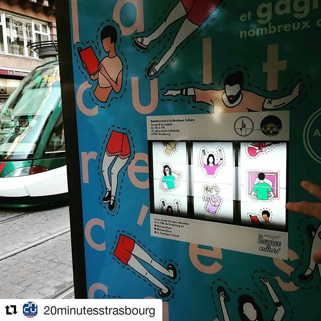 La Boutique Culture (lieu de promotion de l’offre culturelle de l’Eurométropole) a mis en place un jeu de casino, type bandit-manchot, à une station de tramway. Tu actionnes la machine gratuitement et tu peux gagner des places de concerts, des entrées de musée, et autres activités ou cadeaux culturels. Lorsque six personnages identiques s’affichent, le distributeur imprimera un ticket d’or miniature invitant le gagnant à se rendre à la Boutique Culture pour retirer son lot et découvrir une partie de l’offre culturelle strasbourgeoise.