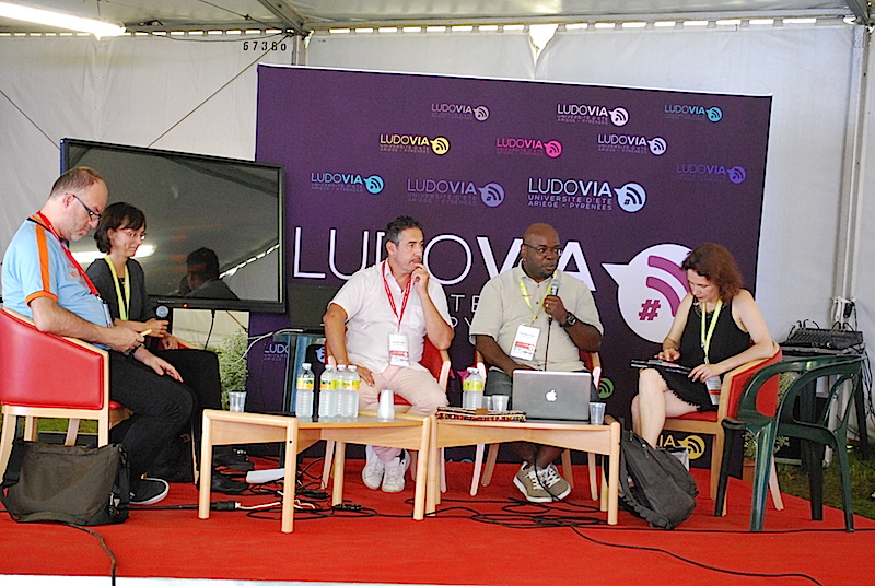 Les invités de cette table-ronde sont soit des meneurs de projets de terrain, comme Jamel El Hayachi, collège André Saint Paul du Mas d’Azyl, et Salim Zeyn, game designer à l’initiative du projet Arcadémie, soit spécialistes de la médiation numérique, comme Nathalie Colombier. Cette dernière a dirigé l’équipe française de l’encyclopédie Encarta et créé Declickids, un site qui passe en revue les applications numériques pour la jeunesse. Stéphanie de Vanssay est à la croisée des deux mondes : professeure des écoles, ancienne éducatrice spécialisée et animatrice en centre de vacances, elle est aussi conseillère technique sur numérique et éducation à l’Unsa-Education, serial twitteuse et créatrice du TwittMOOC.