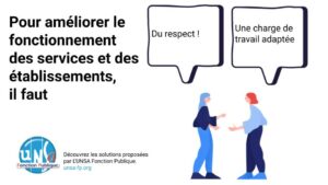 Ce n’est plus possible. Il est urgent d’avoir un dialogue constructif qui débouche sur des mesures concrète et rapides. Aussi l’UNSA demande que soit organisé de toute urgence un Grenelle de la Fonction publique.
