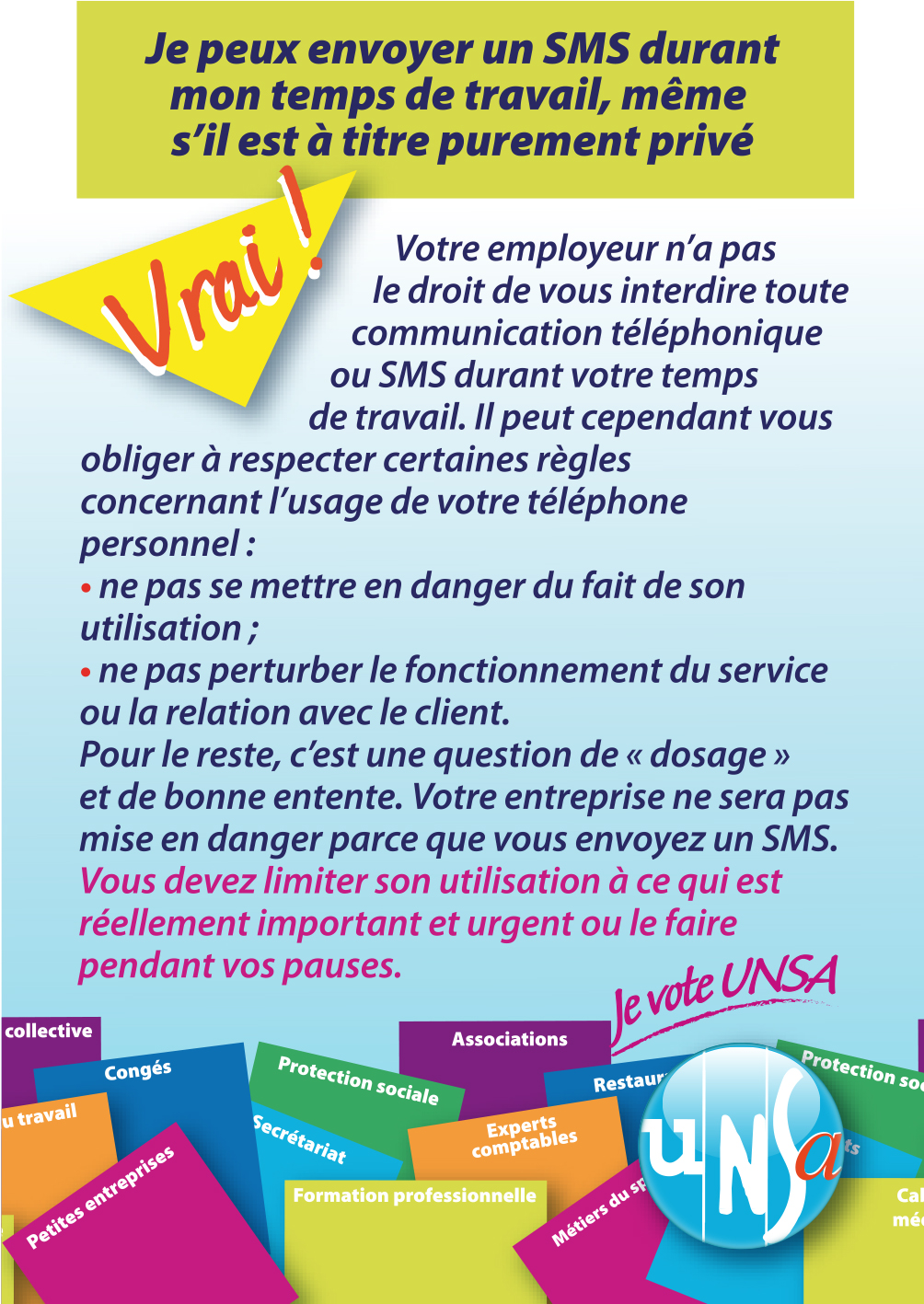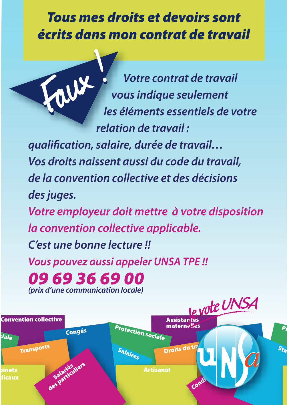 Il s’agit d’un vrai/faux sur des questions précises relatives au droit du travail. Il montre aux salariés des entreprises de moins de 11 et des salariés des particuliers employeurs notre volonté de les renseigner, de les informer.