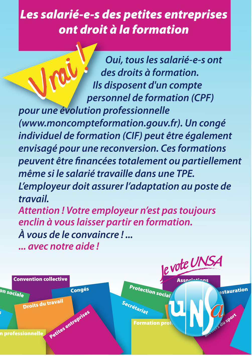 Parce qu’à l’UNSA on se préoccupe des salariées et des salariées des TPE et des Particuliers employeurs voici un document spécifique !