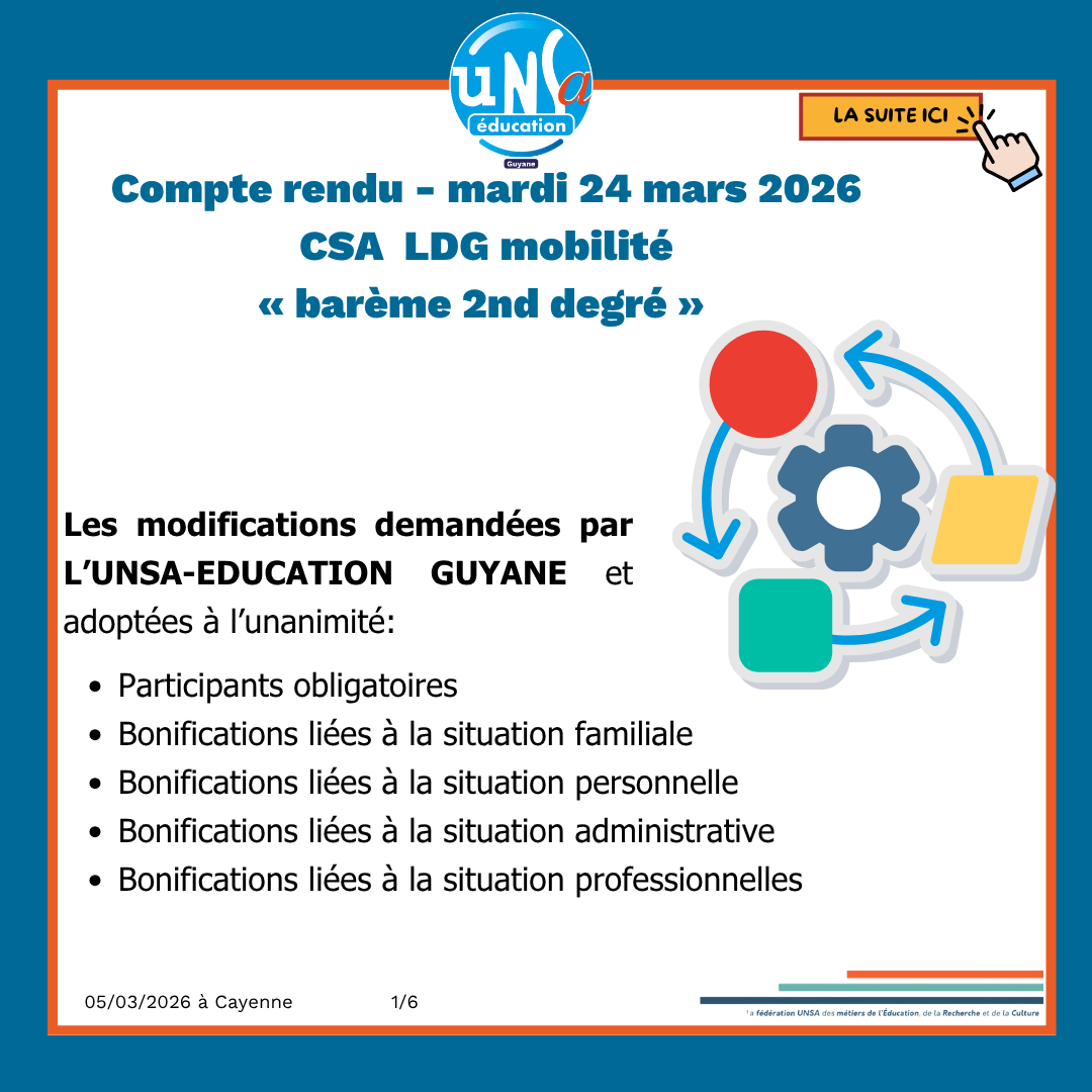 Le CSA (comité social d'administration) ministériel de l’Éducation nationale s'est réuni ce jour pour étudier le Plan national d’action handicap et inclusion professionnelle 2026-2031 ;…