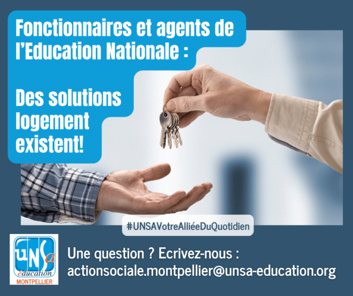 Vous avez besoin très rapidement d’un logement ? Un partenariat avec action logement a été conclu et propose des logements temporaires de type 1 ou T1 bis (18 à 20 m2) meublés et équipés. Ce dispositif concerne les fonctionnaires stagiaires ou les personnels rencontrant brutalement une situation difficile. La procédure permettant d’y accéder est précisée sur ACCOLAD, rubrique Ma carrière>Aides et accompagnements personnalisés>Action sociale