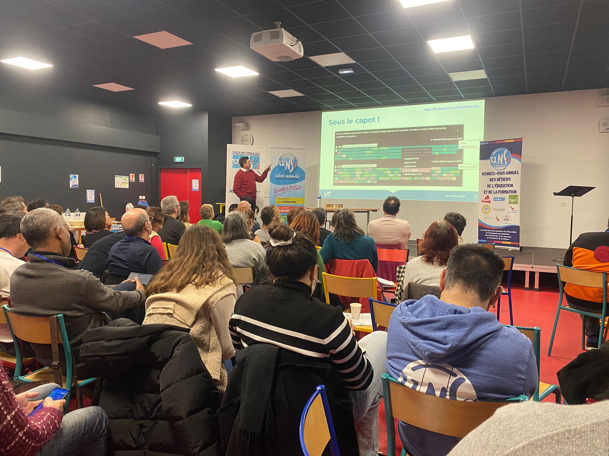 Plusieurs dizaines de collègues, représentant tous les métiers de l’éducation et issus de tous les départements de l’académie, se sont retrouvés dès le début de la matinée pour s’emparer de cette question qui bouscule notre système éducatif, et plus largement la société. « Comme professionnels, nous ne pouvons ni ignorer ces changements, ni attendre d’être dépassés, a rappelé la secrétaire régionale de l’Unsa Éducation, Agnès Rose Da Costa. C’est maintenant que se jouent les choix éthiques, politiques et éducatifs qui façonneront nos pratiques de demain. L’IA pose des questions qui traversent tous nos métiers : décrochage, données de santé, correction automatisée, affectation, gestion… »